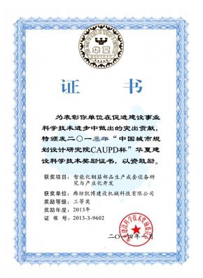 華夏建設科學技術獎 智能化鋼筋部品生產成套設備研究與產業化開發
