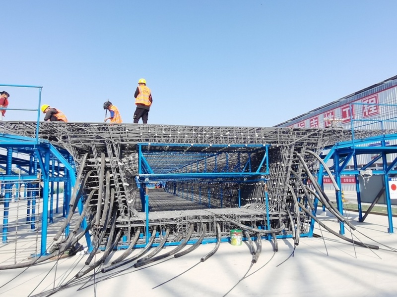 廊坊凱博建設(shè)機(jī)械科技有限公司(凱博科技)依托北京建筑機(jī)械化研究院有限公司在鋼筋加工機(jī)械領(lǐng)域多年的技術(shù)積累,針對高鐵箱梁預(yù)制施工各環(huán)節(jié)對鋼筋制品的差異化需求,潛心研究、精心攻關(guān),按照中鐵十一局集團(tuán)橋梁有限公司項(xiàng)目需求,助力新建首個滬渝蓉項(xiàng)目武宜段WYZQ-5標(biāo)荊門鐘祥制梁場。其中鋼筋加工數(shù)字化項(xiàng)目,包含GQX-300數(shù)控鋼筋剪切生產(chǎn)線、GWXL2-32D數(shù)控彎曲中心、GWXL4-25D數(shù)控彎曲中心、GQX-GWX-25數(shù)控鋼筋剪切彎曲一體生產(chǎn)線、GGJ12數(shù)控鋼筋彎箍機(jī)、GT5-12調(diào)直機(jī)(32米)、GTWQ12調(diào)直五機(jī)頭、HJDW12焊接定位網(wǎng)等多種設(shè)備,可定制化生產(chǎn)高鐵箱梁預(yù)制施工各環(huán)節(jié)多種鋼筋制品。