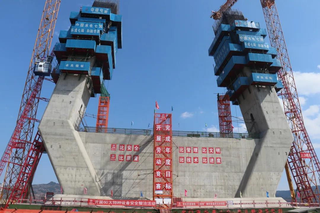 廊坊凱博建設機械科技有限公司作為橋塔外部斜線施工升降機和橋塔內(nèi)部檢修升降機的供應商,為項目提供了質(zhì)量可靠、運行高效的起重升降設備,滿足了橋塔斜度大、施工工期緊、安裝精度高等要求,克服了洪水、疫情等困難,在中國水電七局的統(tǒng)一領導下,通力協(xié)作、攻堅克難,圓滿完成金堂大橋的工作任務。